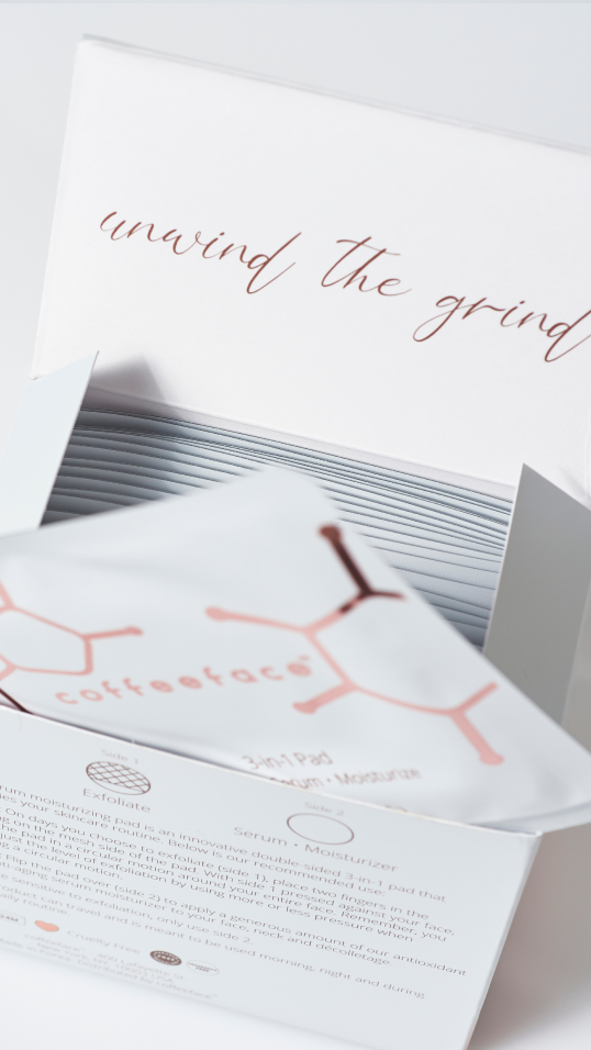 coffeeface® 3-in-1 Moisture Pads feature stabilized caffeine to boost collagen. Super hyaluronic acid hydrates skin. The benefits of manuka honey are its antibacterial and humectant properties.